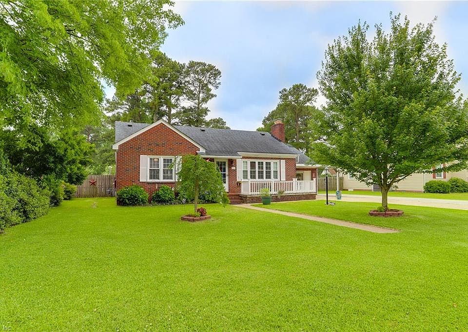 WOW! This impeccable brick home in sought after Brentwood is ready for summer fun! Gracious front porch and entry with large living room, gas fireplace and newer carpet (wood floors underneath). Bright and sunny large family room addition leads to freshly stained covered deck, and view of the fenced backyard. The 6-year-new 24' round above ground pool is attached to the deck for an in-ground feel. Oversize detached 2 car garage is a dream workshop! Original garage is converted to full bath, pantry, laundry & utility rooms. Beautiful wood staircase leads upstairs for 3rd bedroom, playroom, home office...you name it! Tons of built in storage too! So many recent updates: New HVAC, PVC sewer line and pool steps in 2019, new pool pump in 2018, new roof in 2017. All windows have been replaced. A must see!