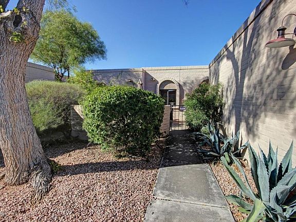 Location, location! 10 minutes to all essentials: post office, shopping, fine/casual dining, banks, River Walk. Front courtyard welcomes you to this coveted, private home w/updated kitchen boasting farmhouse sink, newer appliances & counters, new IKEA cabinets, glass tile backsplash, spacious pantry. Master bath updated w/glass tile surround. Beehive fireplace. Hardwired fans w/light kits. Laminate wood flooring in BRS. Large laundry w/ overhead cabinet storage. Private yard is extension of the home: covered patio, room for intimate entertaining. Dual pane windows. Sturdy block construction. HOA covers pool (kit. fac. & comm. cente), front landscape (outside the courtyard), exterior maintenance (paint only not roofs), water, sewer, garbage, streets, all common area elements