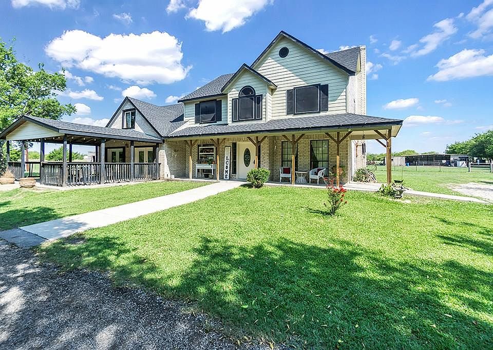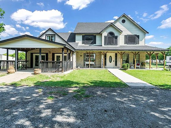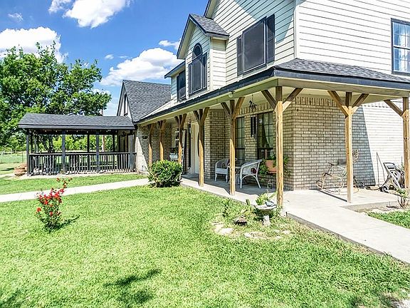 PERFECT CHIC FARMHOUSE ON 7 ACRES with mineral rights and private pond! No city taxes or city restrictions and NO HOA! This home has 5 bedrooms complete with a man cave or game room with a custom bar perfect for entertaining. Kitchen is updated with beautiful granite countertops, SS appliance and custom cabinets.The kitchen is open to a cozy living area complete with a custom fireplace. This home also offers an eat in kitchen, formal dining room and a Texas sized office or den area. Upgrades include new flooring throughout, updated wooden stairs, new carpet in bedrooms, oversized shower, new roof, new septic lines, insulated private well and more!