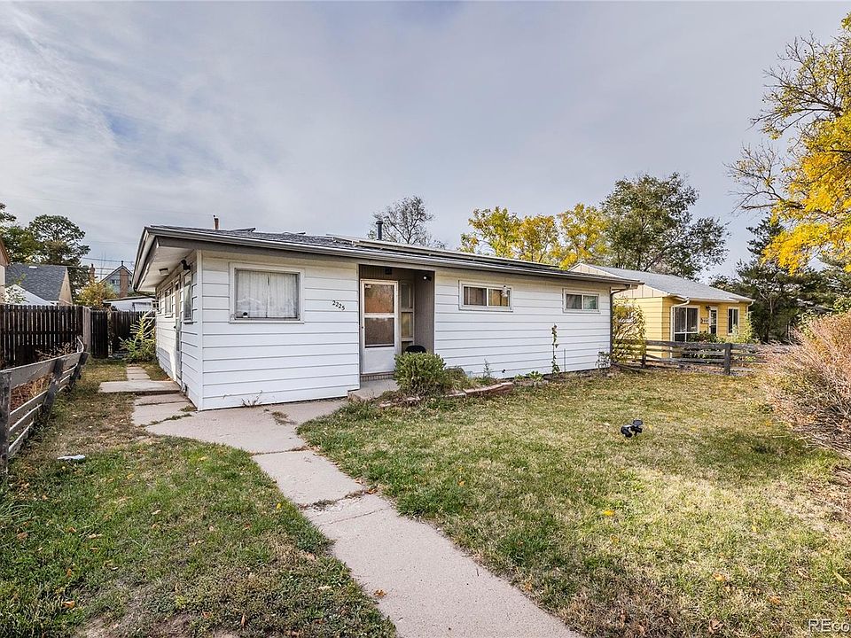 This home is in an older, established neighborhood, close to the newly remodeled Moorehead Rec Center, Stanley Marketplace, University of Colorado Medical Center, Children's Hospital, Eastbridge Town Center and an easy walk to the RTD bus stop (approx 2 blocks away), area parks, shopping and dining as well as a great area to bike in. A walk score of 78 makes this the perfect spot for your home. 1342 square feet gives this home one of the largest square feet for the area on one level!! Large Picture windows in the great room and dining room make for a light and bright home. Fenced yard with shed and garden area. The detached 1 car garage has a concrete pad to the side for one more car. New metal roof is being installed on your detached garage prior to closing. Some remodeling has been done, such as granite counter top, kitchen appliances and custom live edge island with cooktop, laundry room with sliding doors and solar. (*Solar is leased at approx $57 per month through SunRun and buyer will need to talk to SunRun to takeover the lease - easy process!). The rest of the cosmetics changes are up to you! Home is sold "AS-IS" and is priced accordingly.
