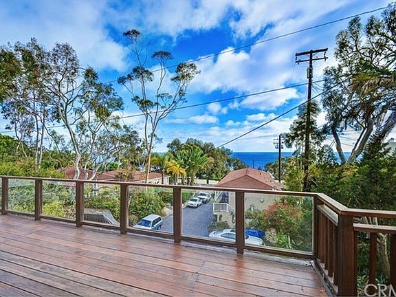 Newly renovated, ocean view condo with Panoramic views of Pacific Ocean, Catalina, Moss Point and Woods Cove. French doors of living room and bedroom open to a large deck (480 sq. feet) with sweeping ocean and sunset views. Two bedrooms, one bath, ground floor corner unit, fireplace in living room, recessed lighting, storage, laminate flooring, upgraded windows and shutters. Covered parking spot available + Street parking. This gorgeous unit is nestled in the historic Moss Point neighborhood, walking distance to Laguna's finest beaches, dining, art galleries and five-star Montage Resort with free Summer Trolley stop a few steps away. Available September 1st! Serious applicants only.