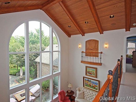 One of Spfld's most prestigious addresses - all brick 6BR/5.5BA luxury home sits on 13th fairway of Illini Golf Course! Main fl has study,DR,LR w 18ft ceil & gorgeous view, lrg Cherry kitchen w dbl thermador oven,island seats 6,hearth rm w stone FP & bkfst rm, Mstr w cust closet & tile W/I shower. UL has 3 guest suites,open loft & 5th BR. LL w rec rm,fam rm,6th BR,BA,hobby/exerc rm,brick wine cellar(1200 bottles). 3 zoned HVAC,Coppertree stone patio/landscap, irrig lawn, 4 car gar,new 60 yr roof