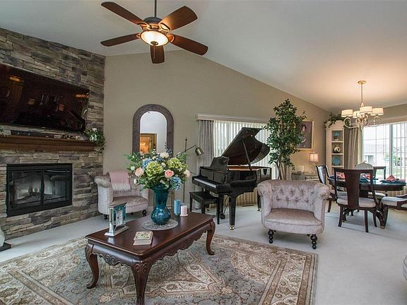 Whether you are a young professional or wanting to transition to a new lifestyle this condo/zero lot line might be just what you are looking for!! Stunning Custom Sattler built ground level walk-out with a wall of windows that provide a scenic view of the lush backyard & wooded lot! Kitchen has custom cabinets, real hard wood flooring, quartz counters, breakfast bar & built in desk/drop zone. 1st floor laundry. 2 spacious bedrooms on the main & 2 full baths. Enjoy entertaining your friends & family in the lower level family room which features a second corner gas fireplace, custom bar & additional dining area! 3rd bedroom & full bath allowing a private guest retreat. Enjoy outdoor entertaining or relaxing on the extended patio with canopy (which remains) & extensive landscaping. Oversized 2 stall garage. Located in the Heritage Green Development featuring both zero lot & single family homes, with pond & walking trail. Easy access to Edgewood Rd, dining & shopping and to I-380. No association fees, lawncare & snow removal maintenance are available.
