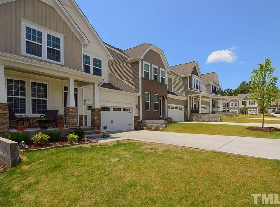 Like new Luxury 4 bedroom w/FINISHED DAYLIGHT BASEMENT w/full bath & hobby room! 1st flr office/formal living. Huge family room w/gas log fireplace. Open eat-in kitchen w/granite counters & stainless appliances. Hardwood downstairs & 9' smooth ceilings! Large master suite on 2nd flr w/crown moulding & glamour bath w/raised garden tub w/sep tile shower. 2 garage. Almost like a S/F home w/spacious yard! 2nd fl laundry. Dual Zone HVAC. Community pool! I-40 & 540 close by. Easy commute to RDU, RTP, etc.