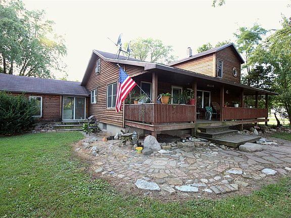 What a beautiful setting for this 3 bedroom 1 and 1/2 story home. The exterior is redwood siding, large covered porch across the front and a 1 car attached garage. Beautiful trees all over this 1.5 acre tract. Also has a 32 X 48 pole barn with 12 x 10 mancave attached. Small pond and chick coop included. Inside are original hardwood floors on the main level, custom amish cabinets, pantry, separate living and dining rooms, bath with utility room and a great view out the front living room windows. Upstairs is a master bedroom, storage, a full bath and sliding glass doors that lead out to a deck. The open unfinished full basement has poured walls that and could have many uses. Updated furnace in 2021 and new central air in 2016. New compressor on the septic. This home has nice big closets Basement has a wood furnace if you would like to heat with wood. This home has a park like setting and is so peaceful. You can get there from Route 51, Brownstown and Bluff City.