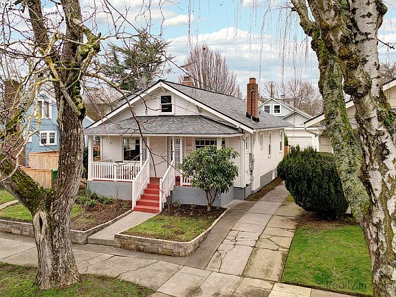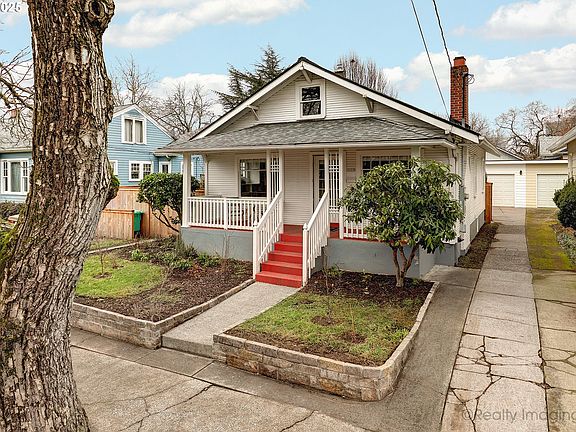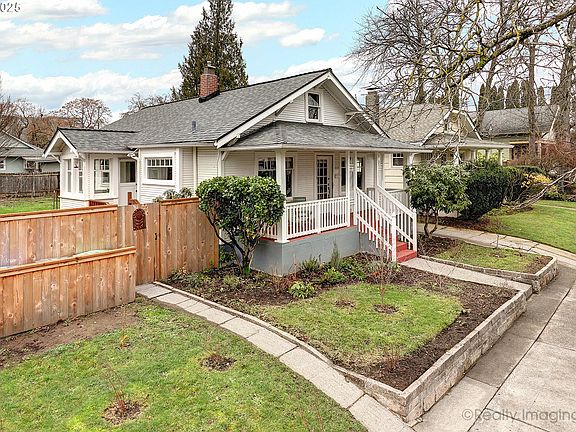 Just the sweetest little bungalow, still featuring gorgeous original details and modern updates. You'll love the newly fenced, private backyard and patio - perfect for entertaining, harvesting fruit trees, playing catch with pets, raising chickens or gardening in the many raised beds. Gorgeous newer hardwood floor grace most of the main level, including the kitchen and the sunniest breakfast nook with built-in banquet seating. The large living room features a cozy, wood-burning fireplace and original built-ins. The huge adjacent dining room also showcases lovely original built-in cabinetry. There is a narrow staircase up to the partially finished attic offering 483 SF of opportunity. Opportunity abounds in the unfinished basement as well, which is open and clear - a great canvas for your design ideas and/or storage needs (there is an exterior entrance to the basement as well). Additional amenities include: new light fixtures, oversized covered front porch, all appliances included, newer detached one-car garage and more! [Home Energy Score = 4. HES Report at https://rpt.greenbuildingregistry.com/hes/OR10190347]