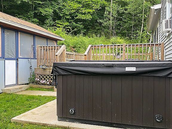 Move in ready. Great outdoor space for entertaining. Hot tub, tiki bar, concrete fire pit. Enjoy plenty of privacy on the outskirts of town. Great property for a growing family or high end rental property. With 6 bedrooms to choose from easily convert to a bar/recreation area, movie theatre room, office, or gym. 1st floor laundry. All new windows, interior and exterior doors. Roof replaced less than 10 years ago. Lovely wooded lot at the end of semi-private road. A great price for all these amenities. Bathroom 1 tile flooring/tiled shower-bath combo Bathroom 2 tile flooring/tiled shower & laundry