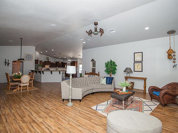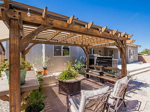 Better than new, front & back professionally landscaped. Fireplace on large covered back patio, pergola, & shed stays. Portico double door entry with side & top windows. New wood laminate flooring in living & dining areas. Big kitchen with granite on the large island & breakfast bar perfect for entertaining. Breakfast nook with bay window and French door to finished back yard. 4 bedrooms, 1 with laminate floor used as office. Master bedroom with seating area, double vanities & walk in closet. Nice listing