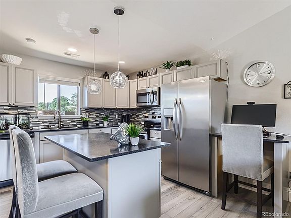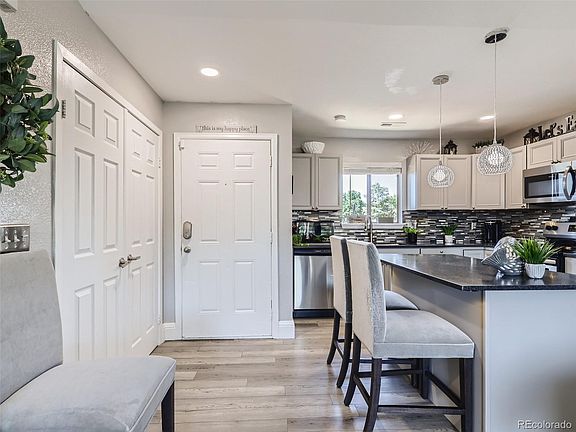 Completely remodeled top floor condo! Faces the West Tollgate Creek open space/trail area. New soft-close kitchen cabinets, new appliances, backsplash, graphite counter tops, island and built-in desk area. Remodeled bathroom with marble-top vanity, one piece toilet. All new lighting including recessed and high end pendants. New vinyl/wood flooring and carpet and all new window coverings. This floor plan has been completely opened up and you'll love the neutral & modern design features. These condos have their own HVAC, and this one has newer furnace & water heater. Ring doorbell and keyless entry included. Reserved covered parking and plenty of visitor spots. Own for less than renting with low taxes and low HOA dues. There is nothing this updated for this price- see it today! Condo recently appraised at $265,000
