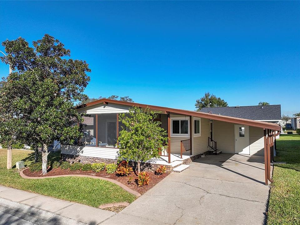 DON'T MISS YOUR OPPORTUNITY TO GRAB THIS TURN KEY VACATION HOME! This one owner home has been used only a winter residence since it was new! This charming, well-maintained home features 2 bedrooms and 2 baths. You'll love the front screen enclosed patio that is just off of the living room. The sliding glass doors opening to the patio fill this home with light! There's a small breakfast bar for two in the kitchen, along with a closet pantry & tiled floor. The dining area features a built in buffet/display cabinet area for storing extra dishes, etc. The master bedroom is also light filled with a corner bay look window. You'll enjoy the convenience of the inside laundry room, located in the hallway. There's even a 13x7 storage room off of the carport. Updates to this home include: A/C System (2011), Roof (2014), New double-pane windows & sliding glass door (2016). Don't miss this great vacation home located in Highland Fairways, an age restricted Golf Community in NW Lakeland. The low monthly HOA fee covers your lawn maintenance, clubhouse, pool & all amenities and Spectrum Cable TV, Internet & WiFi.