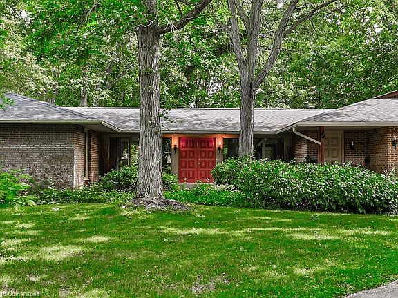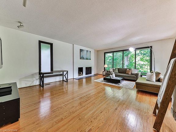 Discover limitless possibilities with this seldom-available bungalow situated on a spacious 84 X 263 lot, located in a peaceful cul-de-sac, embraced by mature trees that foster a serene atmosphere. The sunken living room, complete with a warm wood-burning fireplace, offers a cozy retreat for relaxation and entertaining. The eat-in kitchen, enhanced by a skylight that floods the area with natural light, connects conveniently to the dining space, simplifying meal preparation and hosting. A standout feature of this home is the amazing floor plan with multitude of walk-out options. Each of the dining room, kitchen, living room, and family room provides direct access to a patio, facilitating effortless indoor-outdoor living and allowing you to fully appreciate the beautiful environment. The great room, featuring a second wood-burning fireplace and vaulted wood ceilings, exudes a charming cottage-like ambiance while remaining close to shops, major highways, and schools. Make this your home today!