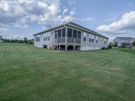 Breathtaking, Almost-New Ranch on Corner Lot - Over Half an Acre! This stunning one-level home offers an open floor plan filled with natural light and sits on a spacious corner lot of more than half an acre. Enjoy tons of upgrades throughout, including tray ceilings, crown molding, a chef's kitchen with a huge island and a large walk-in pantry, and a gas fireplace with built-in bookshelves—too many features to list! The luxurious master suite boasts a spa-like bath and a custom walk-in closet. Step outside to a deck overlooking the greenery and fruit trees in the backyard. Experience the best of country living while being just minutes from shopping, dining, and major highways! House is in contract. Waiting for DD.
