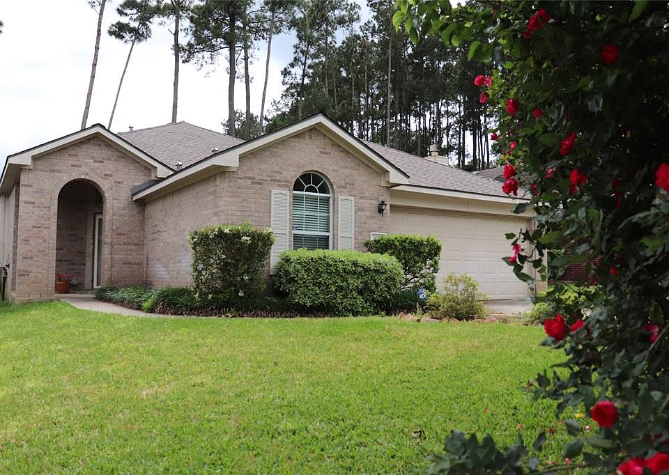 The superior location on a quiet cul-de-sac within Teas Lakes makes this beautiful home all the more desirable. Both the front and back yards have gorgeous aged trees and huge mature red rose bushes that bloom nearly all year. The developer has an affinity for pink and red roses and planted them throughout the shared community areas. It's enriched with two neighborhood lakes that ducks call home, plus paths along the water for scenic walks. Giant mesmerizing fountains, park benches scattered along the shoreline and a large sundeck over the big lake enhance the resident's enjoyment of the water. The home welcomes with an inviting Foyer featuring art niches and hardwood floors that continue into a secondary bedroom of this split plan that creates a private Master Suite. The inspired Kitchen layout offers recent stainless steel appliances, abundant counters and cabinets for meal preparation and storage, plus a long Breakfast Bar positioned at the Family Room where everyone loves to gather as meals are prepared. The Master Suite is generously sized with a soaking tub, separate shower, closet with three rows for hanging clothes with shelves above and a private water closet. Tall ceilings, walls of windows and a French door draw natural light into this Open Concept Plan. There is a great Study with a built-in desk and shelf that serves as the home office, to save the two secondary bedrooms for family and guests . The Covered Back Patio helps blend indoor outdoor living for easy relaxing, grilling and dining al fresco year round. This super convenient location is just one mile from Interstate Forty-Five with shopping and dining plus it is less than five minutes to Lake Conroe's tranquility, fishing, boating and other water sports and only forty minutes from Bush Intercontinental Airport and fifteen minutes to the FM 242 North Medical Center. The gift that keeps on giving is the low 2.4% Tax Rate, low $250 annual homeowner's association dues and recent roof. A great value.