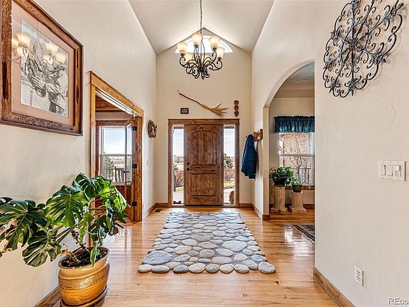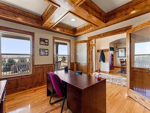 Sprawling ranch with a finished walkout basement nestled on a 35 acre lot. Enjoy open plan living with a spacious kitchen which flows seamlessly into the family room. The kitchen includes bar seating, a dining area, granite countertops and stainless steel appliances. The cozy family room has a gas fireplace to keep you warm on cold nights. The primary bedroom with 5 piece bathroom, 2 bedrooms with a full Jack and Jill bathroom, powder room, laundry room with new, commercial grade washer and dryer, formal dining room and office with rich, wood wainscoting and tray ceiling complete this level of the home. The basement includes another bedroom and a gym, both with egress windows, as well as a full bathroom. An entertainer's dream, this enormous basement also includes a living area with surround sound, a space for games or any activity that interests you, a custom library with built in shelving and an oversized custom desk as well as a full sized wet bar. The fun continues outside with a fire pit, sand volleyball pit, horseshoe pit, waterfall/slow river, 2 covered porches in the front and back of the home, a deck outside of the walkout basement, an outdoor bar and kitchen space and last but not least 269 trees and over $300,000 spent in landscaping! There's a full sized barn in the back of the home where the sellers have hosted weddings and small concerts for friends! There is so much to see here! Close to I70 and Quincy, 25 minutes from Southlands, 40 minutes from the airport and 12 miles from a golf course. You get the best of both worlds in this oasis in the heart of Bennett. Take a look! Extras:3 car garage w/custom cabinets, new furnace, includes hot tub+55 inch tv outside,Central Vac throughout home, kitchen and garage, comes with a 1000 gallon propane tank, surround sound system in basement and outside. The owners lease some of the land to a farmer who then pays the owners 1/3 the value of the crop. ALL MINERAL RIGHTS WILL BE TRANSFERRED TO NEW OWNERS.