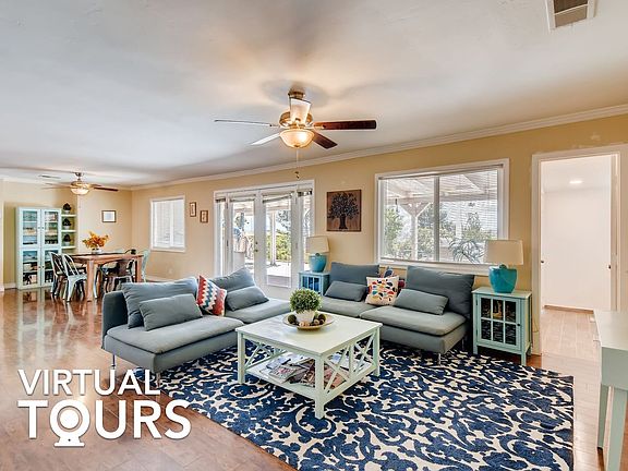 Large 1.23-acre lot in Alpine with endless possibilities!! Move-in ready ranch-style home with sparkling pool offers 3 bedrooms, 2.5 bathrooms (powder room not reflected on title), and 2,433 square feet, as well as rich wood flooring throughout the living areas, crown molding, upgraded granite kitchen, updated bathrooms, dual paned windows, ceiling fans, and a huge entertainer's dream backyard with outdoor kitchen, covered patio, and an in-ground pool! Granite counters & custom cabinetry in kitchen with some pull out shelves, upgraded Frigidaire Gallery stainless-steel appliances, and a large center island overlooking the family room, creating the perfect setup for entertaining! Open floorplan with fireplace in living room with large windows & tons of natural light. Living areas are easily accessible to the rear covered patio/outdoor living spaces. All of the bedrooms are generously sized with ample closet space and western facing views that produce wonderful light. The oversized primary bedroom is an absolute retreat with double doors out to the backyard, walk-in closet with closet organizers, and a gorgeous en-suite with dual vanity, granite countertops and upgraded flooring. The sprawling backyard is an absolute paradise and offers views that go on for miles, beautiful pool and a partially covered patio with built-in BBQ, amazing for weekend cookouts! Separate laundry room. Ample storage throughout includes an outdoor shed and finished 2-car garage w/ built-in shelving + concrete RV pad with hook-ups. Central A/C. Leased solar panels. All rear yard is completely fenced & gated, perfect for children & pets. Conveniently located near shops, restaurants, hiking, fishing & boating, and several lakes nearby. This rare gem won't last long!