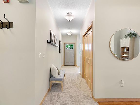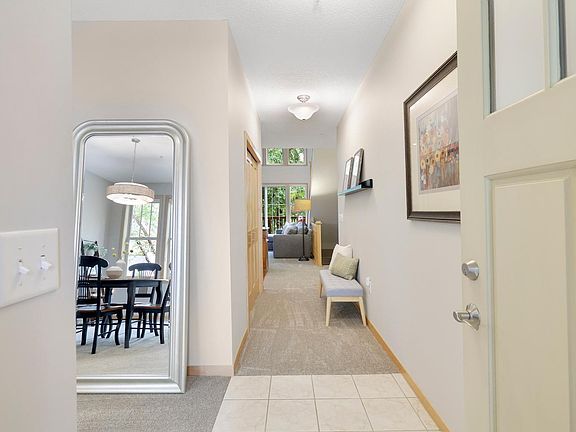 Welcome to a rare opportunity for refined, executive one-level living along Nine Mile Creek and Moir Park. This exceptional residence is defined by its superior fit and finish, with soaring vaulted ceilings, a dramatic two-story wall of windows, and timeless architectural detailing that frame inspiring natural views. Every space is designed with care—from the chef’s kitchen with granite countertops, breakfast bar, and rich cabinetry, to the elegant formal dining room and the inviting living area that flows seamlessly to the outdoors. The main-floor primary suite offers a serene retreat, where abundant morning light and tree-lined views create a spa-like atmosphere. Upstairs, two spacious bedrooms with walk-in closets share a beautifully appointed full bath, while a versatile loft-style family room provides flexibility for a private office, guest retreat, or creative space. A dedicated storage and hobby room adds the final touch to the thoughtful design of the upper level spaces. Enjoy gatherings on the expansive main-level deck, surrounded by mature trees that provide privacy and natural beauty. The unfinished lookout lower level offers limitless potential to expand the home to nearly 3,000 sq. ft., while the fully finished and insulated 2-car garage reflects the same level of care seen throughout. Set within one of West Bloomington’s most desirable enclaves, this home offers direct access to Moir Park’s trails and amenities—soon to be enhanced by a transformative $20M renewal project—ensuring a lifestyle that blends convenience, recreation, and sophistication. Pride of ownership is evident in every detail of this spotless, move in ready home.