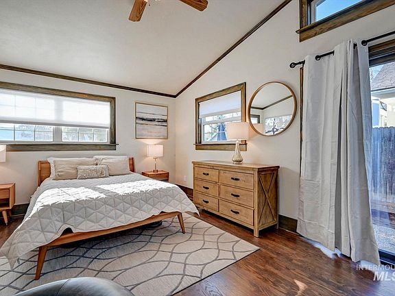 Charming North End Home within blocks of downtown Boise, the Boise Foothills and Hyde Park. Home features stained oak hardwood floors, new appliances, quartz kitchen countertops, custom backsplash, designer blinds, new furnace and air conditioner. Metal roof and new paint inside, with paved alley access and plenty of parking space in back of property. Parking area is concrete 27x50. Potential to build garage with ADU in back or a carport. Home is also on "Boise Bikeway" path.
