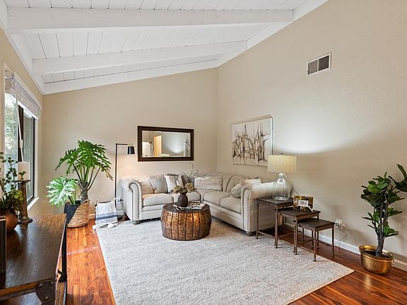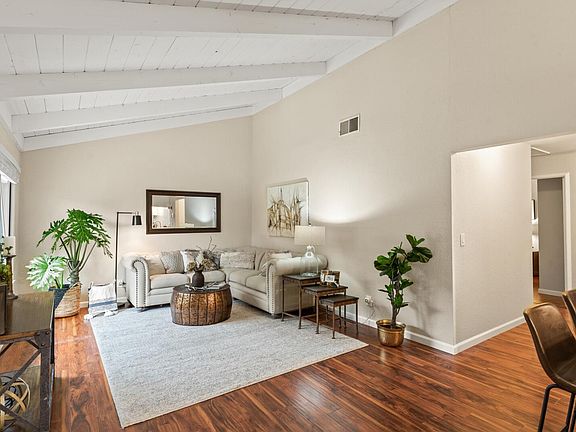 Enjoy the functional, open floorplan with vaulted ceiling in living room, large, bright eat-in kitchen, and hard floors throughout. Granite kitchen countertops and brand-new stainless-steel appliances. Enclosed private yard with large patios, mature fruit trees, and garden beds. 3 spacious bedrooms, 2 full bathrooms. Central heating & AC. 2 car finished garage. In Monta Loma community, a short walk to Starbucks, Thaddeus Park and Safeway. Central location to major high-tech companies (Google < 2 mi). Los Altos High! (buyers to verify).