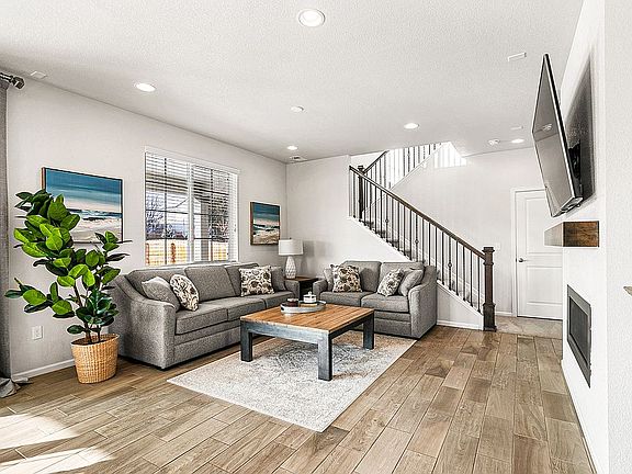 You don't want to miss this beautiful, 2-story home situated on a larger corner lot that was completed in 2017! As you enter this move-in ready home, you're greeted with an abundance of natural light, stunning vinyl planking flooring, an open concept floor plan that makes entertaining a dream, and oversized sliding glass doors that conveniently lead to your back patio and private yard. The spacious kitchen features stainless steel appliances, soft-close cabinetry, a large kitchen island complete with breakfast bar for additional seating, pantry for extra storage, and plenty of room to dine. Keep cozy during the colder months with the gas fireplace! Once upstairs, you have a loft area that can be used as an office, play area, a second living room, or so many other possibilities! The master suite includes a walk-in closet with built-in shelving and its own luxury master ensuite bathroom with dual sinks. With all bedrooms located on the 2nd floor, along with the laundry room, it makes doing laundry a breeze! Outside, you'll find that the huge, fully fenced-in backyard has so much room for your furry friends to play while you BBQ all summer long. Don't forget, this home is situated in the award-winning Cherry Creek school district! Plus, there's incredibly easy access to E-470, Quincy Reservoir, dining, shopping, entertainment and so much more!