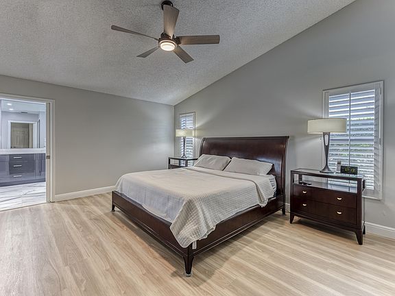 4 Bedrooms, 2 1/2 baths pool home located in Boca Ratons finest hidden secret , Estates of Boca Lyons. Roof is less than 1 yr. Two Trane a/c units 1 1/2 yrs. Volume ceilings first meet the eye when you walk into this home. Lots of windows let in natural light & provide all around views of the pool. All living areas have ceramic tile. Open kit. has SS appliances with lots of views of the pool and is open to the Fam. Rm. Sunny brkt area off the kitchen. All windows, doors & sliding doors are impact glass. Garage door hurricane rated. Oversized primary bdrm features are---luxury vinyl plank (LVP) flooring, sliding door leading to the screened patio and lg walk-in closet w/ custom shelving. Primary bathrm, updated 2 yrs ago w/ many upgrades, has dual sinks, soaking tub and separate shower. 3 additional bdrms are spacious w/ luxury vinyl plank (LVP) flooring, ample closets w/ custom shelving. Bathroom 2 & powder bath updated 2 yrs. ago w/ nice upgrades. Solar water heater. Pool converted to salt system, new marcite, new pump & waterfall-2021. Travertine pool deck. Fully fenced large backyard. This is a non-gated neighborhood ideal to call home. HOA $33 a month, no HOA application necessary. Close to I95 & turnpike. Great schools. Great neighborhood too call home!