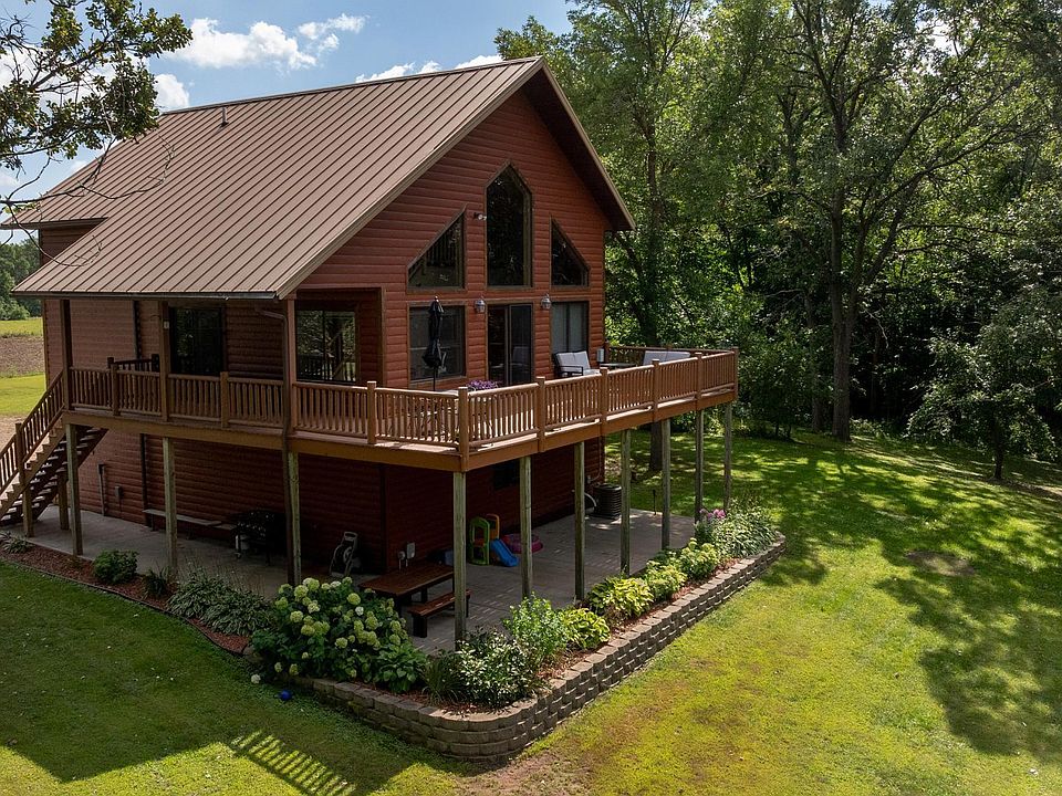 Country living and quality craftsmanship meet at this 4BR, 3BA home east of Brainerd. The home features a heated and insulated garage, pine and oak woodwork, custom hickory cabinets, lofted living room, stainless appliances, an awesome lofted family room, a huge wrap around deck with an elevated view facing west for fantastic sunsets, outdoor wood boiler heat or propane backup and the potential for a huge garden, all on 2.5 picturesque acres!