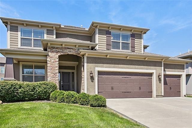 Hurry! READY TO MOVE IN RARE 5 BEDROOM JEWEL!! Lovely home located in desirable Olathe, KS. This one comes with it all!! Great community HOA with pool, park, club house, and pond just minutes from dining and shopping! Dynamic open and spacious floor plan with new paint, welcoming landscaping and 3 car garage. This amazing 2 story has impressive upgrades galore such as a built-in buffet at main entrance, formal dining room, and fireplace in the living room right off the gorgeous dream kitchen with extended granite counter and half bath and mud room. Enjoy the enormous windows overlooking the large backyard from several viewpoints. Retreat in elegance in the sizable master bedroom with huge en-suite bathroom with double vanities and large shower with double heads. Enormous finished lower level has a 5th bedroom and Hollywood bath shared by inviting family room! Don’t let this one get away!
