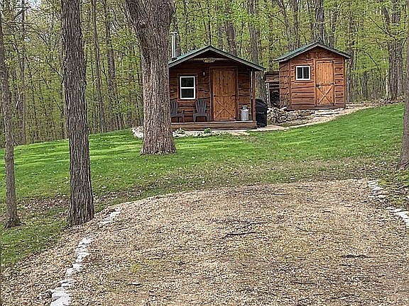 Sale pending: Gorgeous get away for hunting and relaxing, located on 6.92 acres nestled in a park like setting with deer and turkeys in abundance. Property is outfitted with two - two person tree stands and an elevated insulated hunting shack. This Amish built 12 x20 cabin is connected to electricity, sits on a concrete slab, features live siding exterior, knotty pine interior, air conditioning unit, wood burning stove, lofted queen sized bed and kitchenette. This property also includes a matching shower house/workshop with, 3 year old 12x14 Amish built shed, 16x6 wood shed, and two fire pits. Shower house is finished inside with cedar and is run with electric heater and pump connected to holding tank. This property has so much to offer. Contact us for more information. Serious inquiries only. $69,900.