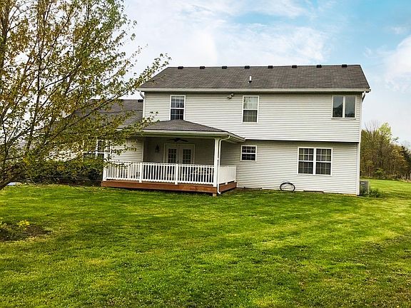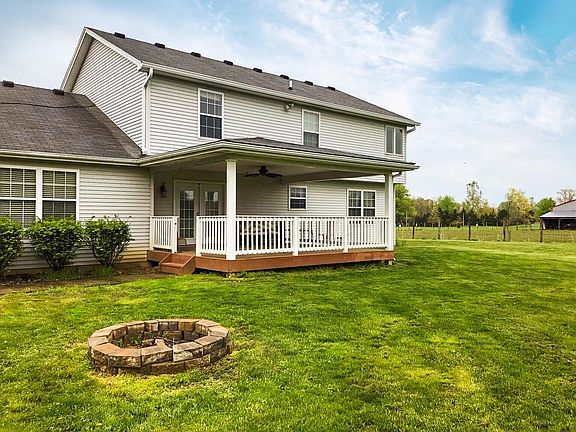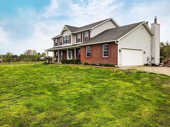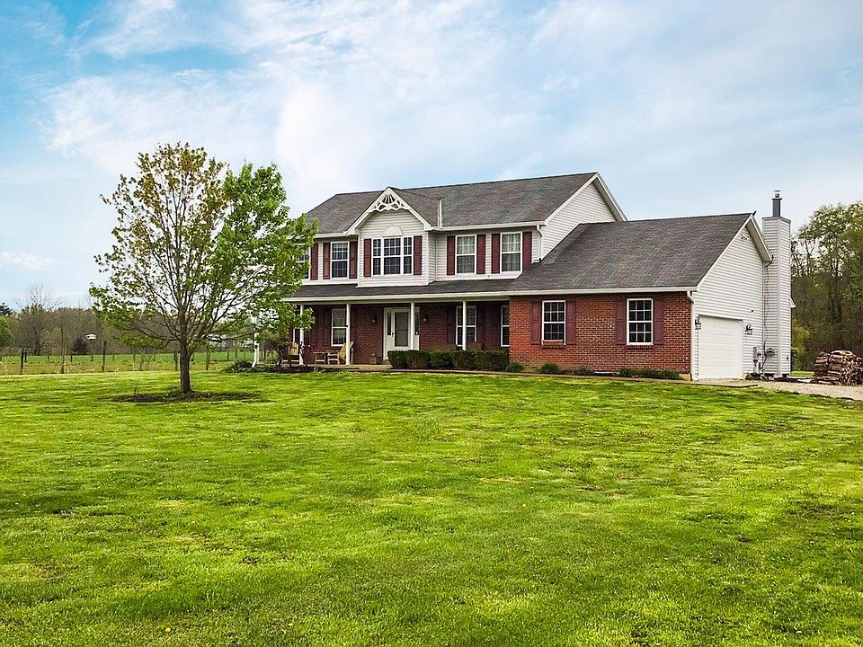 10 acre home located on a quiet dead end road with 4 bedrooms, 2 1/2 baths, den, dining room, family and living room with fireplace. Large master suite and partially finished basement. This property features two pole barns with concrete floors and electric. Enjoy peaceful country evenings on your large covered back patio with pond views. For a large home in the country, look no further! This home comes with a 1 year warranty.