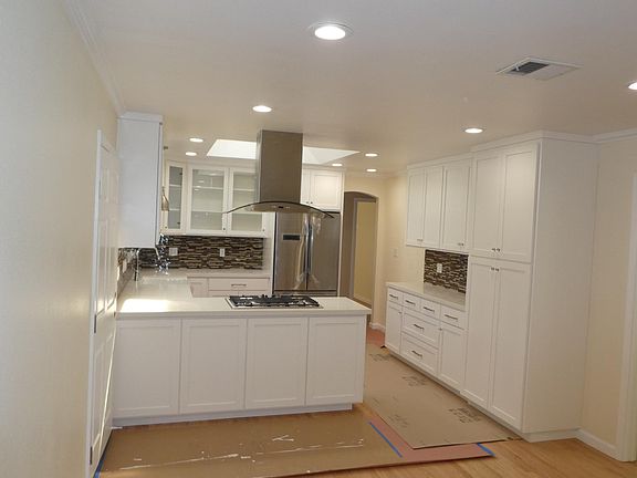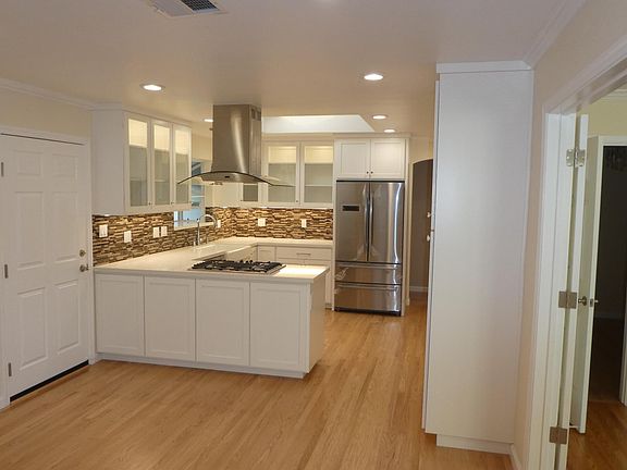 Located in private court this remodeled home is ready for tenants to move in and enjoy. -Kitchen with white custom cabinetry, under cabinet lighting,Bosh appliances, gas cook top, quartz counter top with glass tile back splash, Kohler cast iron farm sink... -Two bathrooms with custom fixtures, designer tile work, curbless shower with barn style glass enclosure, Robern medicine cabinets... -3 skylights: master bedroom,kitchen and foyer -Refinished oak hardwood flooring throughout -Backyard gazebo with flagstone patio perfect for cooking out -Lawn with automatic irrigation system tenant pays all utilites, gardenind paid by owner