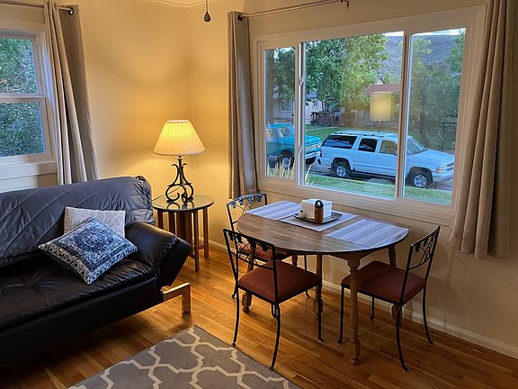 Please note- This unit is being rented fully furnished. MOVE IN SPECIAL! Half off first month's rent if you move in June or July. Beautifully maintained 2 bedroom/ 1 bath home for rent near Downtown Golden. Home has wood floors throughout with newer appliances. Xeriscape backyard makes for a maintenance free yard that you can enjoy without the work. Front lawn has grass with garden beds that are the responsibility of the tenants to maintain. Laundry in unit and street parking! Utilities cost is a flat rate of $200 each month. There is no garage or shed for this property. Hurry before this home is gone! Utilities are a flat $200 Utility each month. No smoking, no pets. Credit Score must be 700 or higher to rent this property. 1 year lease