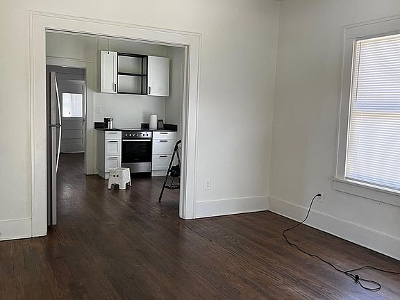 One side of duplex, Newly refinished hardwood floors, updated kitchen with new appliances, recently repainted, covered front porch, concrete patio, yard mowing service is included, tenant pays water, electric, and gas. Central heat and air, fenced yard but is currently common with other tenant. The unit is fairly small but has all the advantages of a house. Off street parking. Large fenced back yard. Washer /dryer included. Great location. Prefer an 18-24 month lease.