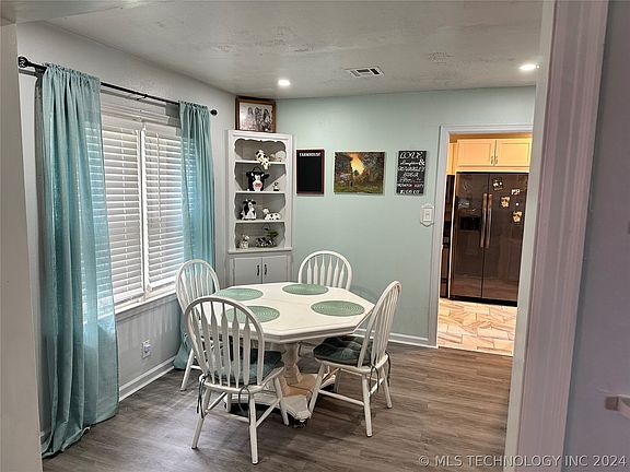 Welcome to this delightful 3 bedroom, 1 bathroom home nestled in the heart of Muskogee. Step inside to discover a cozy living room highlighted by a fireplace, perfect for creating a warm and inviting atmosphere. The updated kitchen and dining area provide ample space for meal prep and family dinners. Adjacent to the kitchen you'll find a newer covered deck, perfect for outdoor entertaining, relaxing, or enjoying your morning coffee. Outside, safety and peace of mind are paramount with the in-ground storm shelter. This home also features a new roof, updated flooring, bathroom has been updated, hot water heater - 4 yrs. and most of the home has new vinyl windows - double pane, tilt for easy cleaning. Lastly, the detached garage offers additional storage and parking options. Reach out today to schedule a viewing and experience the warmth and charm of this lovely home!