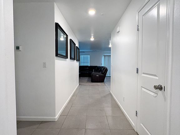 This 4 bedroom with 2 Bathroom home has an open floor plan, is freshly painted and has clean carpet in living room and bedrooms. The kitchen includes a quartz island and countertops and also has a pantry. Master bedroom has a walk in closet and its own bathroom that includes a full shower and double vanity sinks. Upon entering the home floor is tiled until the kitchen and the back sliding door. All doors to the home have brand new doorknobs and the front door has a pin entry doorknob. Microwave and Stove included. Cooling Features: Central Air. Heating Features: Natural Gas.. 2 car garage. This home also includes indoor laundry area. 2.3 miles distance to park. 2-year contract. Renter pays for own utility bills. No smoking in house.