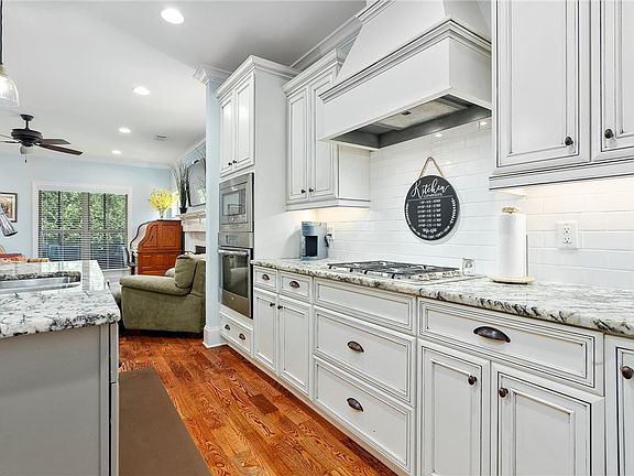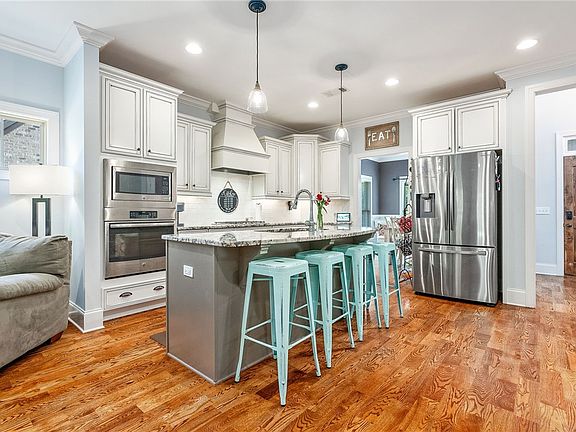 Wonderfully maintained, like-new home located in the desirable Oak Grove at Highlands community. With 4 spacious bedrooms and 3.5 bathrooms, this home offers an open floorplan designed for easy entertaining and comfortable living. As you enter, you'll be greeted by beautiful sand-and-finish hardwood floors that flow through all the common areas and the master suite. Crown molding trim throughout the entire home adds an elegant touch. The kitchen is a chef's dream, boasting white cabinetry, ample counter space, and a large island. It seamlessly connects to the formal dining and living areas, making it perfect for gatherings. The master suite, conveniently located on the first floor - includes a luxurious master bathroom with a double vanity, a relaxing garden tub, and a tiled shower. Step outside to the expansive backyard, perfect for outdoor activities and entertaining. Enjoy the patio and the screened-in porch! HOA fee covers lawn maintenance, weed control and pine straw