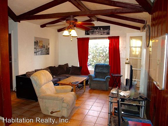 4 Bedroom, 2 bath student compound, guest house included, UA Area - This is an excellent student compound, located just north of the University near the corner of Edison and Euclid. The UA is less than a mile away, and you can take residential streets the entire way on your bike. The Sausage Deli is literally a few steps away, so you will never go hungry! This property is pet friendly, with completely fenced yards for both the house and guest house. The main house is three bedrooms, plus a den and one bathroom. The guest house has it's own kitchen and bathroom, so this is a great opportunity for a group of students needing ample space to spread out. Both buildings are air conditioned for year round comfort, and there is off street parking in the front and rear. The main house has a cool ski-lodge vibe inside, with a natural stone fireplace, along with dark-stained knotty pine paneling and ceiling beams. The extra den makes a great study room, spare bedroom, or ? The guest house is currenly set up as a bedroom/home gym, and has lots of possibilities. 4 Bedrooms, 2 Baths total 3 bedroom, 1 bath main house, with a large studio guest house and bath. Central AC Off street parking 2082 Square feet total This is available for August 1st pre-lease only, and is currently occupied. 12 month lease required. Please call or text Michelle Haller at Habitation Realty for a showing appointment. 520-869-3572. Due to the current tenant's schedule, showings are available on Sundays only. Boys live here, so please excuse the mess! We will have this spic and span prior to the next tenant. We do charge a $40 per person application fee, and all potential tenants will be screened for credit, prior evictions, and criminal history. Student's without an income will require a guarantor. All tenants must carry renter's insurance. $1810 due at lease signing. This includes a $250 non-refundable leasing/cleaning fee, and a $1560 refundable security deposit. First month's rent due at move in. Well behaved and loved pets are welcome, with an addtional $200 refundable deposit, per pet. Equal housing opportunity, of course! (RLNE3225006)