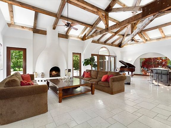 Down a long secluded driveway is a gated private entry that welcomes you with an elegant all?e of trees, a sprawling lawn accentuated by an outdoor fountain that leads to the portico-cochere of this tranquil Mediterranean villa. Sited on 1.8+/- Sprawling acres with pristine landscaping and mature specimen trees. The elegant inlaid wood doors open to a grand vaulted ceiling great room with rustic exposed wood beams, old world fireplace, wet-bar and lounge area that seamlessly transitions to the outdoor mahogany deck, overlooking the heated Gunite pool and separate spa with chic up-lighting. An integrated indoor-outdoor music system creates a retreat like ambiance. Accompanied with open design spaces makes this the ideal home for entertainment. The eastern wing has a generous master suite with walk in closet and zen-like master spa retreat consisting of a double sink vanity, steam shower and champagne bubble jacuzzi. The western wing is comprised of a private guest suite, two additional bedrooms with a bathroom, laundry room, and access to the attached two-car garage. The residence includes a professional home office, nest security system with video surveillance, and radiant heated Italian marble flooring in the expansive main living areas, kitchen and master spa. The sleek modern kitchen offers two Sub-Zero refrigerators, Viking range, custom soft close cabinetry, charming breakfast nook and is adjacent to the formal dining room. This magnificent property combines ambiance with atmosphere for a truly unrivaled private experience.