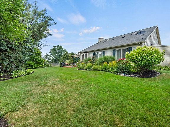 Convenient location. Pride of ownership shows! Low traffic cul-de-sac St. with a back yard that backs up to an open space. Lofted 2 BR ranch w/efficient floor plan. All existing appliances & window treatments stay. Crown molding in foyer. Open GR has skylight, ceiling fan, beamed cathedral ceiling; that opens up to the loft w/another skylight and built in murphy bed. DR has beamed cathedral ceiling & window seat. Galley kitchen has Corian counter tops. MBR has ceiling fan, double vanity, crown molding, ceramic floor & walk in closet. 2nd bath & laundry room are together, located between kit. & garage. The garage has painted floor, shelves & cabinets, pull down ladder & floored attic. Loft has another large floored walk in attic w/attic fan. 3 season room leads to 13x12 deck with pergola & open 13x5 lower open deck. New carpet in loft & stairs. Wood floors in Foyer-DR-LR-Kit-& 2 BR's. Painted trim & 6 panel doors. Furnace approx. 8 years old. CA new in 2023. Roof approx. 11 years old. Attached 14x6 storage space on outside, E side of home. GR area rug stays, look under to see particle board, as is. Exclude pet fence transmitter on E Garage wall. See attachments of items that will remain and items for sale.