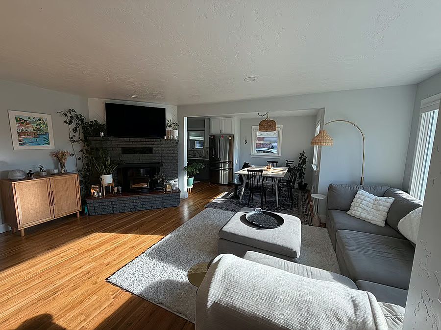 Welcome to this fully furnished, single-level home offering just over 1,600 square feet of comfortable living. With two bedrooms, two bathrooms, and a bonus office, there's plenty of space to relax, work, and enjoy Boise living. Rentals of 1 to 6 months are preferred. Bedrooms The first bedroom features a king-sized bed, smart TV, box fan, walk-in closet with hangers, room-darkening shades, and a bathroom with double sinks. The second bedroom offers a queen-sized bed, smart TV, box Fan, built-in closet with hangers, and two windows with room-darkening shades. A bathroom is conveniently located across the hall. Bonus Room Perfect for remote work or study, the bonus room includes a desk, ergonomic chair, bookshelf, colorful rug, and monitor. Living Room The living room has an L-shaped sofa, ottoman, decorative fireplace, and a smart TV with surround sound perfect for relaxing or movie nights. The fully equipped kitchen has stainless steel appliances, modern cabinetry, and everything you need to cook and entertain. In-unit laundry is also included for convenience. Outdoor Living Step outside to a fenced backyard designed for downtime and gatherings. Enjoy a patio, hammock, fire pit, BBQ grill, and picnic table. Location & Amenities Located in a quiet SE Boise neighborhood near parks, shops, restaurants, and commuter routes. High-speed internet, all utilities, and furnishings are included, making your stay comfortable and stress-free. Security system via Simplisafe along with exterior Ring Doorbell camera. Neighborhood overview This home is in Southeast Boise, close to Boise State University and just a few minutes from downtown. The area has a relaxed, residential vibe with tree-lined streets, parks, and easy access to the Greenbelt and river. Coffee shops, local restaurants, and grocery stores are all nearby. It's a convenient spot for anyone who wants to be close to the city without being right in the middle of it. Fully furnished, utilities included. No smoking or vaping indoors. Pets allowed pending approval.