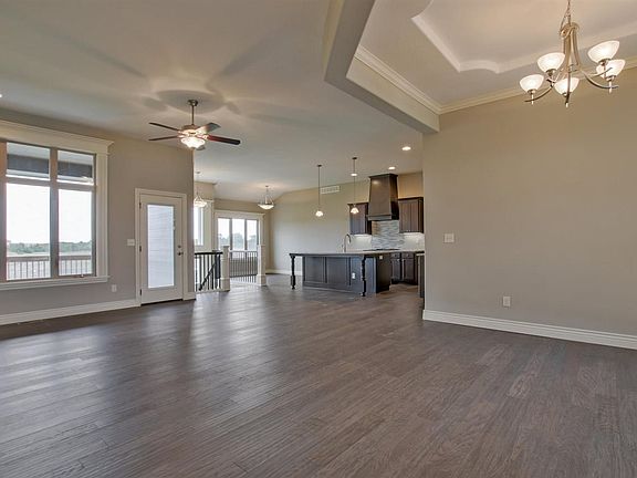 Open main floor concept with very nice construction. Main living area has wood wrapped windows, 10 foot ceilings, two eating areas, walk-in pantry, granite countertops, and view of no neighbors from backyard. Large master suite has enough room for big furniture! Master bath has two sinks, separate tub and shower, a jacuzzi bathtub, and fully-tiled shower. Basement is a mid-level walkout that includes 9 foot ceilings, full-size wet bar, gas fireplace, two bedrooms, full bath, and additional flex room which could be used as an office/workout room/or theater room. Price includes sprinkler system, well, and sod. Home will be finished by end of August!