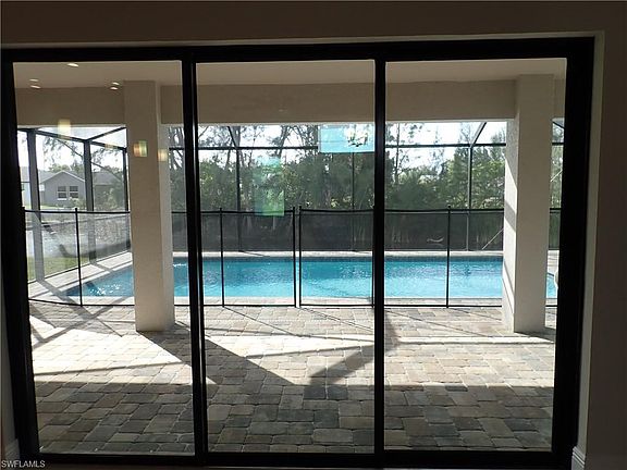 NEW POOL HOME under construction, Western exposure on fresh water canal, approx. 133 ft. seawall, to be complete early Nov. 2020--Located in well established waterfront neighborhood, not in a flood zone, flood insurance may not be needed. This 4 bedroom, 2 bath pool home has a great room design & all living areas plus master bedroom & rear bedroom have waterfront & pool views. Features include tile floors throughout with carpet in all 4 bedrooms, 1990 sq. ft. of living area, granite counters in kitchen & baths, under cabinet lighting in kitchen, inside laundry room with deep sink. Screened lanai & pool (size approx. 13x26) completed with pavers. The master bedroom has sliding glass doors out to screened pool area, 2 walk-in closets, dual sinks with separate soaking tub & walk-in shower. No appliances provided or installed by seller, realtors please read confidential remarks. Single hung Low E tinted dual pane insulated glass windows, 16 seer A/C unit, 2 ceiling fans, irrigation system, floratam sod & upgraded landscaping. All city utilities in place, buyer to assume balance of assessments. Builder is VA approved.