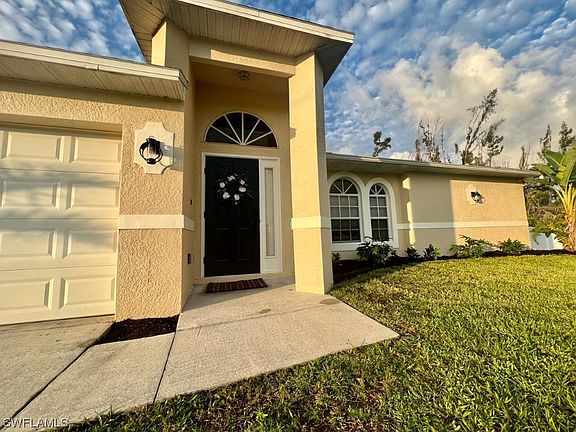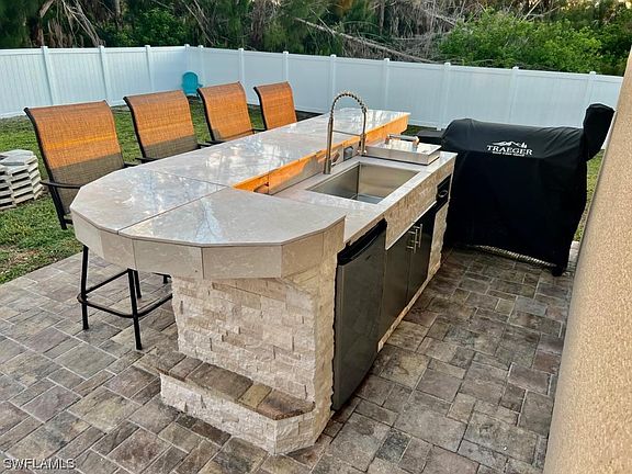 Welcome to this beautiful home on an extra wide triple lot! This Single-Family Home Features 3 Bedrooms, 2 Bathrooms Totaling 1544 Sq FT. New roof and ac condenser in 2022! Recently remodeled master bath. This Wonderful concrete block construction home sits up high with no chance of flooding and comes Move in Ready, it has a great split floor plan, high ceilings in the main living area, and its large windows giving you a ton of Natural Light. New stainless family refrigerator and washer/dryer. It features a huge very private backyard (room for a pool) with screened in lanai with paver patio with a custom outdoor kitchen, perfect for grilling and year rounding entertaining in the wonderful Florida weather! A new gutter along the back patio with installed this month. Fans in Great room, all Bedrooms, also has blinds throughout tile in the main area laminate in 2nd and 3rd bedroom carpet in the master. Was hooked up to City water and sewer in 2018. The exterior has a PVC fence yard installed in 2018 and was partially replaced in 2023. Great Location just Minutes from Entertainment, Shopping, and Recreations.