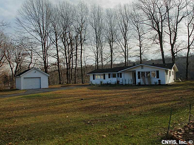 Serene setting along the Black River offers privacy. 4 mile drive to Fort Drum. 1.5 acres with land on both sides of the street! 290' of riverfront with new stairs to access the water for recreation use. Existing garden area features raspberry, blueberry and blackberry bushes.. Detached 1 car garage plus a detached 2 car garage where owner has built a sauna which needs the unit to complete. 3 Bedroom, 2 bath home including the master suite w/new bath. Living-dining-kitchen w/gas fireplace, exceptional kitchen cabinet, solid surface counter, pantry. Tranquil, landscaped patio areas by river