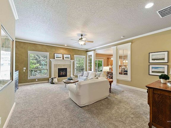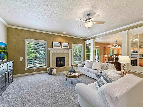 Fall in love w/ this incredible former Parade Home! Located in desirable South Nampa w/in the prestigious Fall River subdivision. Built by Meadowbrook Homes w/ meticulous detail from the layout to the craftsman woodwork throughout featuring custom pillars & crown molding. Gorgeous inlaid hardwood floors great you as you enter into a spacious great room complete w/ gas fireplace. Custom kitchen becomes an entertainer’s delight w/ built in stainless gas range, double ovens, granite countertops, breakfast bar, & huge pantry. Extra large hallways & doorways provide ease of living. Oversized master suite w/ spacious closet, dual vanities, walk-in shower & separate soaker tub becomes the perfect oasis. Plenty of room in each bedroom w/ several having their own walk-in closets. Large finished 3 car garage & additional exterior shed complete the home. Landscaped to the hilt for your outside summer enjoyment on the delightful covered patio. Brand new carpet throughout. You will definitely fall in love with this one!