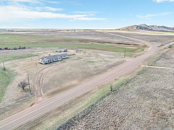 Remodeled home on 7 acres features 3 large bedrooms and 2 full bathrooms. The entrance to the home welcomes you to a spacious living room and dining room that have gorgeous hardwood floors and beautiful crown molding. The very nice kitchen features quartz counter tops, tons of cabinets, dishwasher and electric stove. All of the bedrooms are nice size but the Primary Bedroom is especially large and has a wood burning fireplace and patio doors leading to the back deck. Bedroom #2 is also very big and has 3 large closets. Both bathrooms have been nicely remodeled with tall vanities, toilets and tiled showers. No worry of being caught in the rain or hail because the entrance to the storm shelter is inside the house! In 2017 the house had new windows, roof and an HVAC system installed. The plumbing and electrical were also updated and a new propane gas line installed at that time. The property also comes with a good water well, 2 chicken coops, and several young oak trees. This house is minutes from Lawton and Altus and has a nice view of the surrounding mountains. Truly a must see. Call for an appointment today!