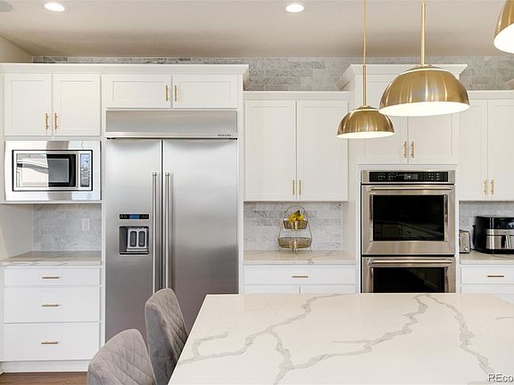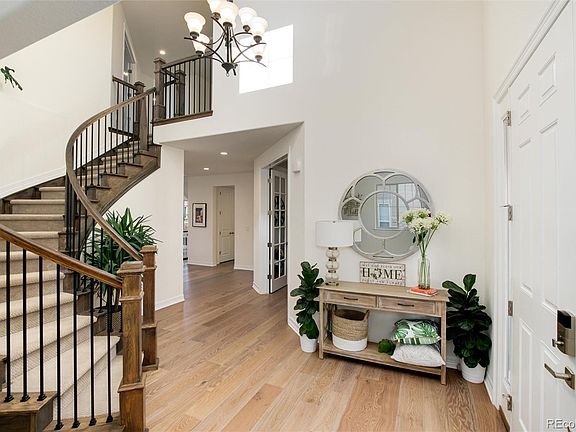 This beautiful 2 story 4 bedroom, 4 bath home in The Highlands at Parker is the one you've been waiting for! The spacious gourmet kitchen features custom quartz counters, a double oven, a gas cooktop, a built-in refrigerator, a generously sized island with counter serving space, offset white cabinets with crown molding, a large walk-in pantry, and eat-in space. You'll think you're in a brand new home the moment you step onto the hard wood floors that extend throughout the main floor - from the office to the great room, the living and dining rooms, and into the kitchen. Upstairs you'll find the luxurious primary suite with 5 piece bath and bedroom sized walk-in closet, as well as a loft/study area, 3 more bedrooms, a J&J bath, and another full bath ensuite to bedroom #4. Other notable features - a butler’s pantry between the kitchen and dining room, a central vacuum system, and a whole house speaker system. The unfinished basement awaits your creative touch! Close to schools, parks, trails, and the spectacular Idyllwilde Grand Hall & Rec. Center, there's no end of things to do here. Or just relax on your front porch or your back patio, you choose. But choose this home and you are golden! Come see it today!
