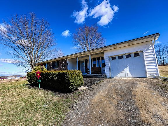 Situated on 5+ acres, this ranch home offers beautiful views and country living. Features include hardwood floors, large eat in kitchen with bar area, spacious living room with pellet stove to take the chill off, den/office. Roomy basement could be finished for extra space. Added bonus that all first floor windows (not included is bay window) will be replaced by seller before closing. Make great use of the enclosed porch for summer fun. Property also sports newer detached 2 story 14x24 shed great for storage or your man cave AND an additional detached 22x30 drive through garage/metal building that would be great for boats, toys or big equipment!