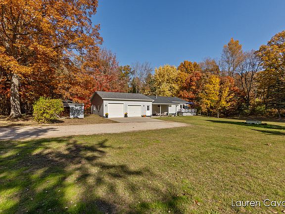 Home is at the end of a private drive off of a county-maintained road and bordered on the southern end by the Huron-Manistee National Forest. Great hunting! Property is above the Michigan rifle line. Large yard great for family and friend get-togethers around the fire pit and lots of space for camping tents. Well maintained by original owner. Open floor plan. Fresh paint and brand-new quality flooring in every room with great views of outdoors and plenty of closet space. Whole house humidifier. Double chamber high-efficiency wood stove can heat the entire house. Insulated and heated bonus room off garage is perfect for extra freezer, food storage, or mudroom. Recently added deck provides a gorgeous view of the valley during the day and the Milky Way at night.