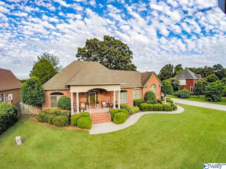 This custom built home is located on the 1st Tee Box at Southern Gayles Golf Course! The open floor plan welcomes you with the beautiful hardwood flooring and vaulted ceilings. The great room features a gas log fireplace, white cabinets with granite countertops in kitchen, spacious dining area, sitting area, isolated master suite with soaring ceiling, walk in closet and glamour bath. Additional amenities include a large sunroom, oversized two car garage, storm shelter, fenced in backyard with large mature trees and floored attic storage.