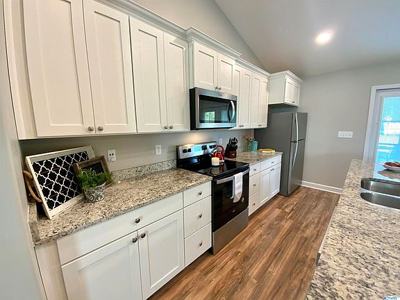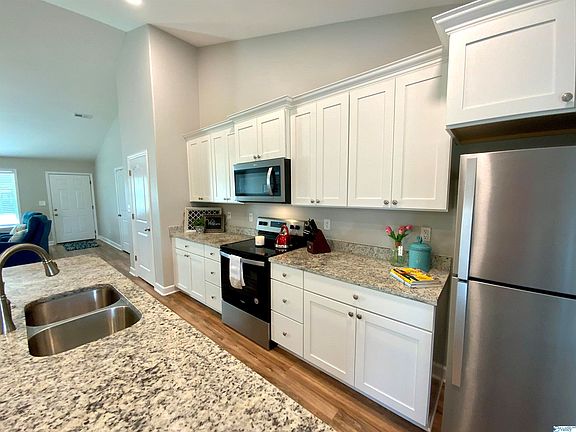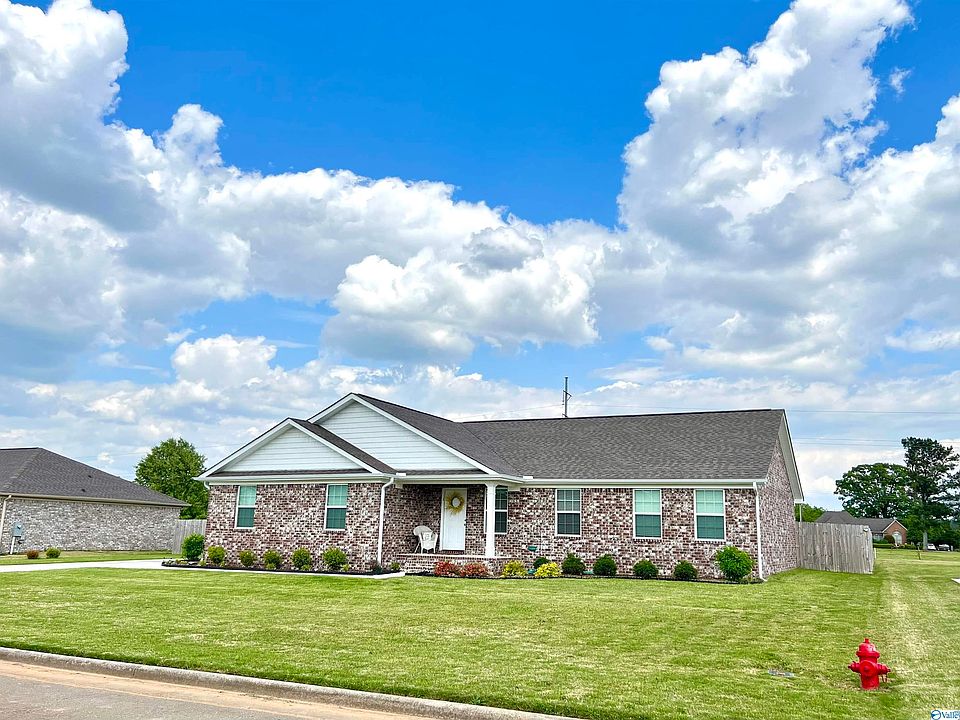 Built in 2020, this gorgeous 3 BDR/2 BTH Full Brick home nestled on a HALF ACRE lot w/Privacy Fence sits w/in the Southern Gayles Golf Course community in front of Hole #2! Home boast gorgeous GRANITE, SHAKER Style Cabinets, Laminate & Tile flooring throughout...no carpet! Spacious main living area enthralls Vaulted Ceiling, Open Floor Plan, 9 FT Island perfect for entertaining, & SS Appliances. Isolated Master ensuite boast large Walk-in Closet, beautiful Oversized TILED shower in Master BTH w/fFRAMELESS glass door and DUAL Vanities. Whether you enjoy grilling, gardening, or gathering around the bon fire this large private back yard has you covered. Minutes from I-65 this one won't last!!!
