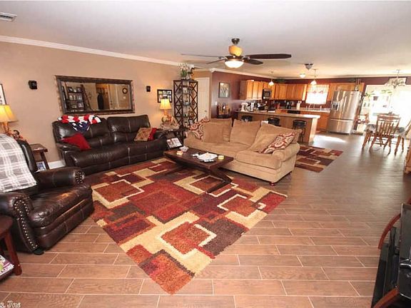 Beautiful family home sitting on 5 acres! Sits off the road behind some trees for privacy. Home features new ceramic wood look flooring in great room, kitchen, hall and hall bath. Huge great room with open kitchen and split bedrooms. Each bedroom has its own walk-in closet. This home has room to grow! Nice above ground pool with new liner thats surrounded by a massive new 2-tiered deck. This deck feels like a second living space.